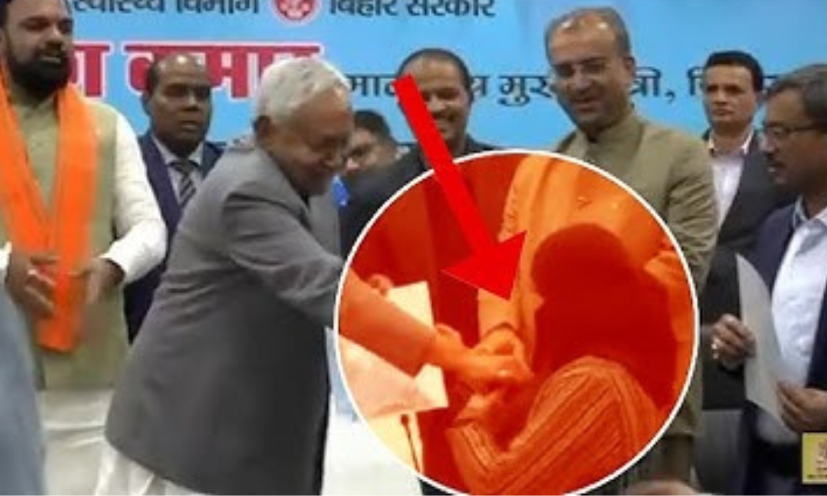पटना : बिहार की राजनीति में एक बार फिर से विवाद की आग भड़क गई है। हाल ही में सोशल मीडिया पर एक वीडियो वायरल हुआ है, जिसमें बिहार के मुख्यमंत्री नीतीश कुमार को एक महिला चिकित्सक नुसरत परवीन के साथ मंच पर विवादित व्यवहार करते देखा गया। यह घटना मुख्यमंत्री द्वारा चिकित्सकों को नियुक्ति पत्र वितरित करने के दौरान हुई।वीडियो में देखा जा सकता है कि जैसे ही नुसरत परवीन मुख्यमंत्री के सामने नियुक्ति पत्र लेने पहुंचती हैं, मुख्यमंत्री नीतीश कुमार उनके बुर्के को हटाने की कोशिश करते नजर आते हैं और कहते हैं यह क्या है? इस दौरान मंच पर मौजूद अन्य अधिकारी और डिप्टी सीएम सम्राट चौधरी उन्हें रोकते भी नजर आए।
