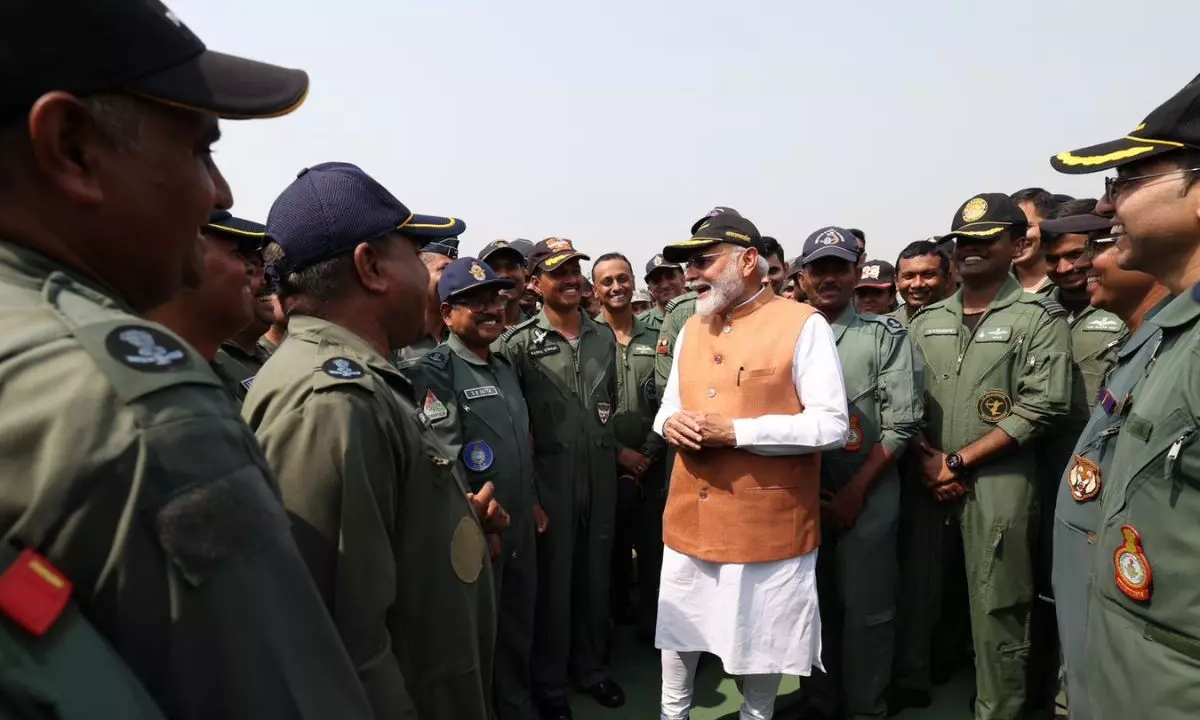 मोदी ने भारतीय वायुसेना की तकनीकी और रणनीतिक क्षमताओं की जमकर तारीफ की। उन्होंने कहा कि भारत की ताकत अब केवल हथियारों तक सीमित नहीं है, बल्कि डेटा, ड्रोन और डिजिटलीकरण में भी निहित है। उन्होंने स्वदेशी ‘आकाश’ एयर डिफेंस सिस्टम और रूस से प्राप्त अत्याधुनिक S-400 डिफेंस प्लेटफॉर्म की भी प्रशंसा की। उन्होंने कहा, “हमारा एयर डिफेंस कवच इतना मजबूत है कि पाकिस्तान के ड्रोन, यूएवी और मिसाइलें हमारे सामने बेकार साबित हो रहे हैं।”